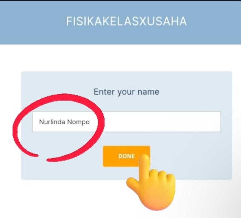 Setelah langkah 1, selanjutnya masukkan Nama kalian dengan lengkap dan benar, lalu klik Done